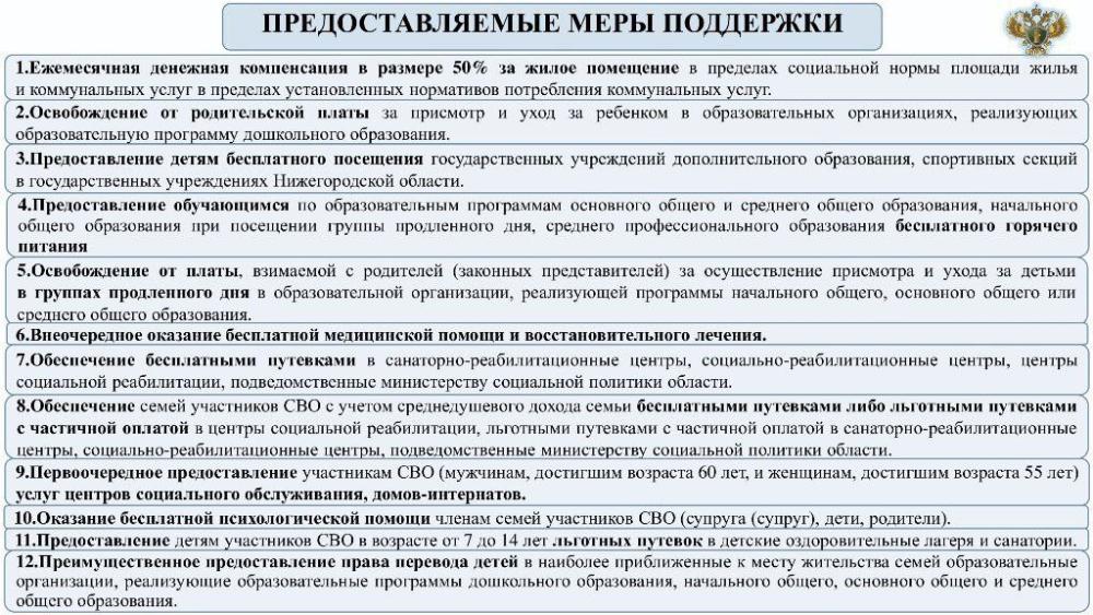 Меры поддержки участникам СВО и членам их семей по Нижегородской области