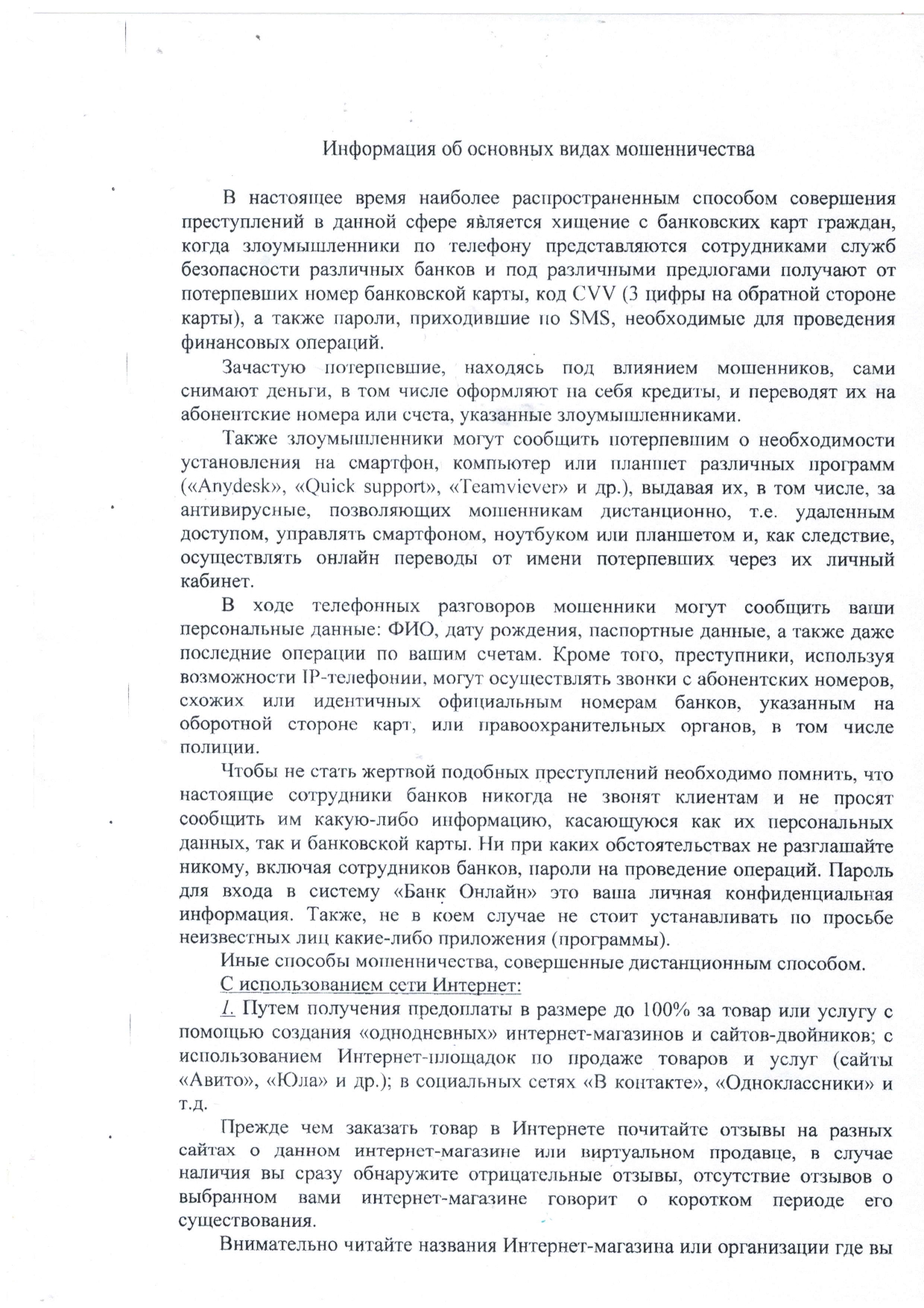 Основные виды мошенничества - (old)-Детский сад "Алёнушка"